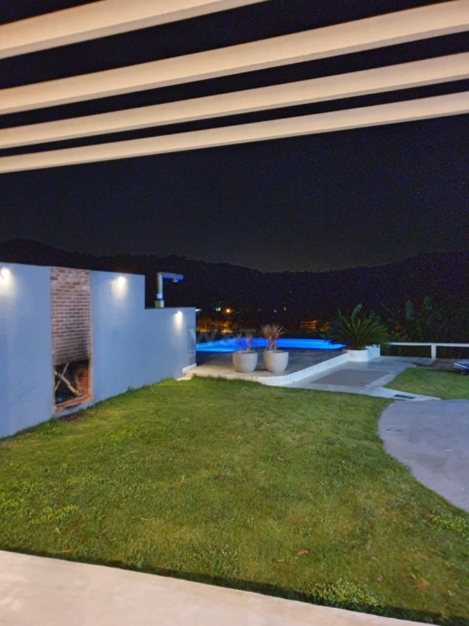 Área de lazer: cozinha gourmet, com churrasqueira e forno a lenha, banheiro, chuveiro para piscina, lareira no jardim, piscina 5x3 e uma parte rasa 2x2 com hidromassagem.